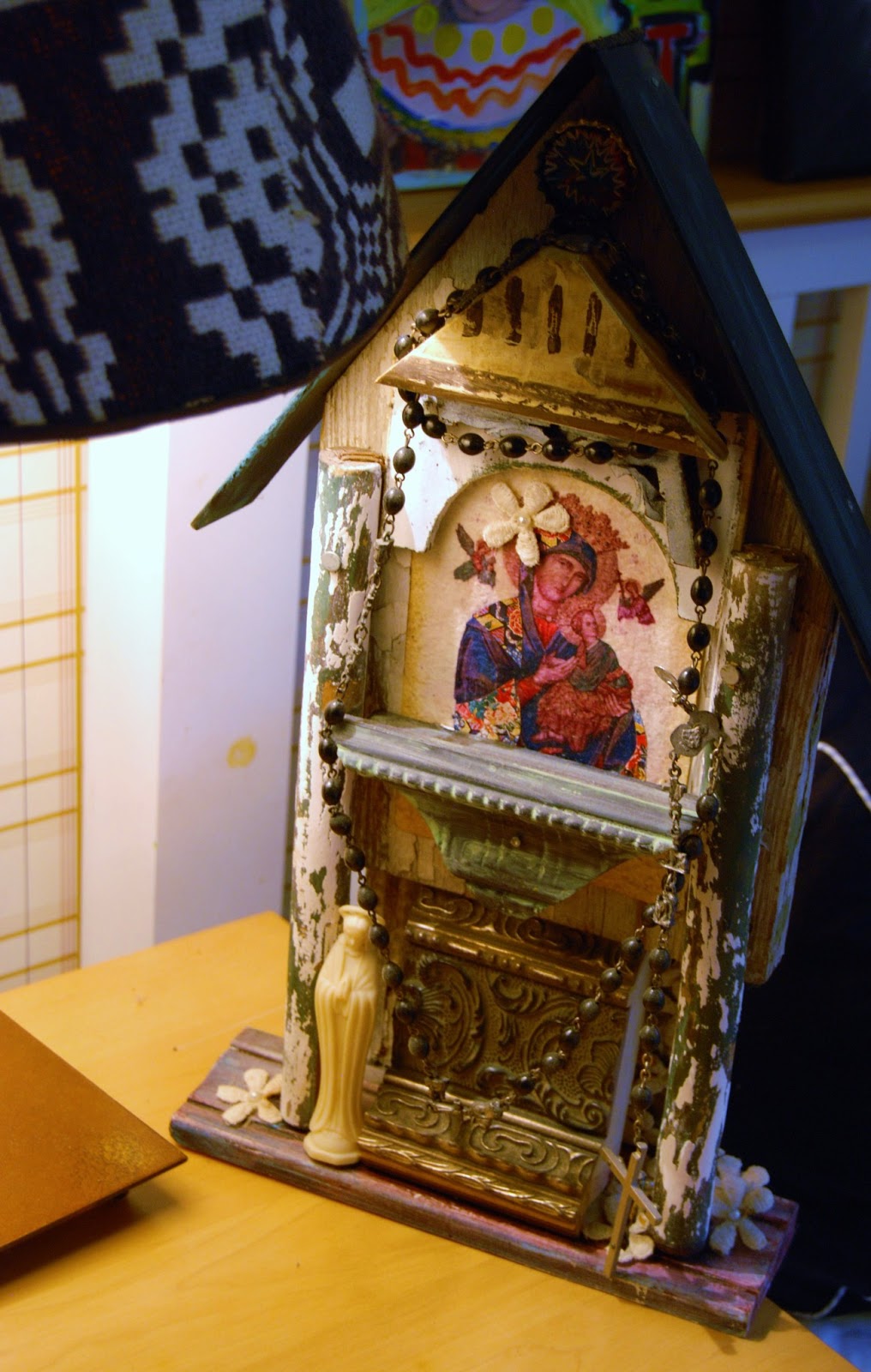 A few various art pieces from some of my besties! The one on the right is from my nephew Simon, who is 3. Sweet Wendy painted me the cross, and the rabbit was salvaged from the trash when Art(ology) opened.
